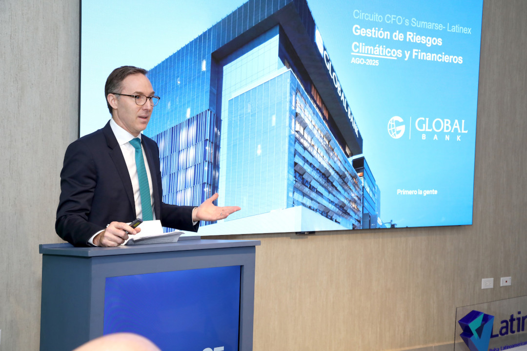 Global Bank participó como facilitador en la segunda sesión del circuito de capacitación “Finanzas Estratégicas y Sostenibles: El CFO ante los retos de la Nueva Economía”, organizado por Sumarse en alianza con Latinex. En representación del Banco, Augusto Arosemena, Vicepresidente Senior de Legal y Cumplimiento, compartió la experiencia institucional en un encuentro que reunió a profesionales de distintas empresas para dialogar sobre el rol de las finanzas en la construcción de una economía más resiliente y sostenible.