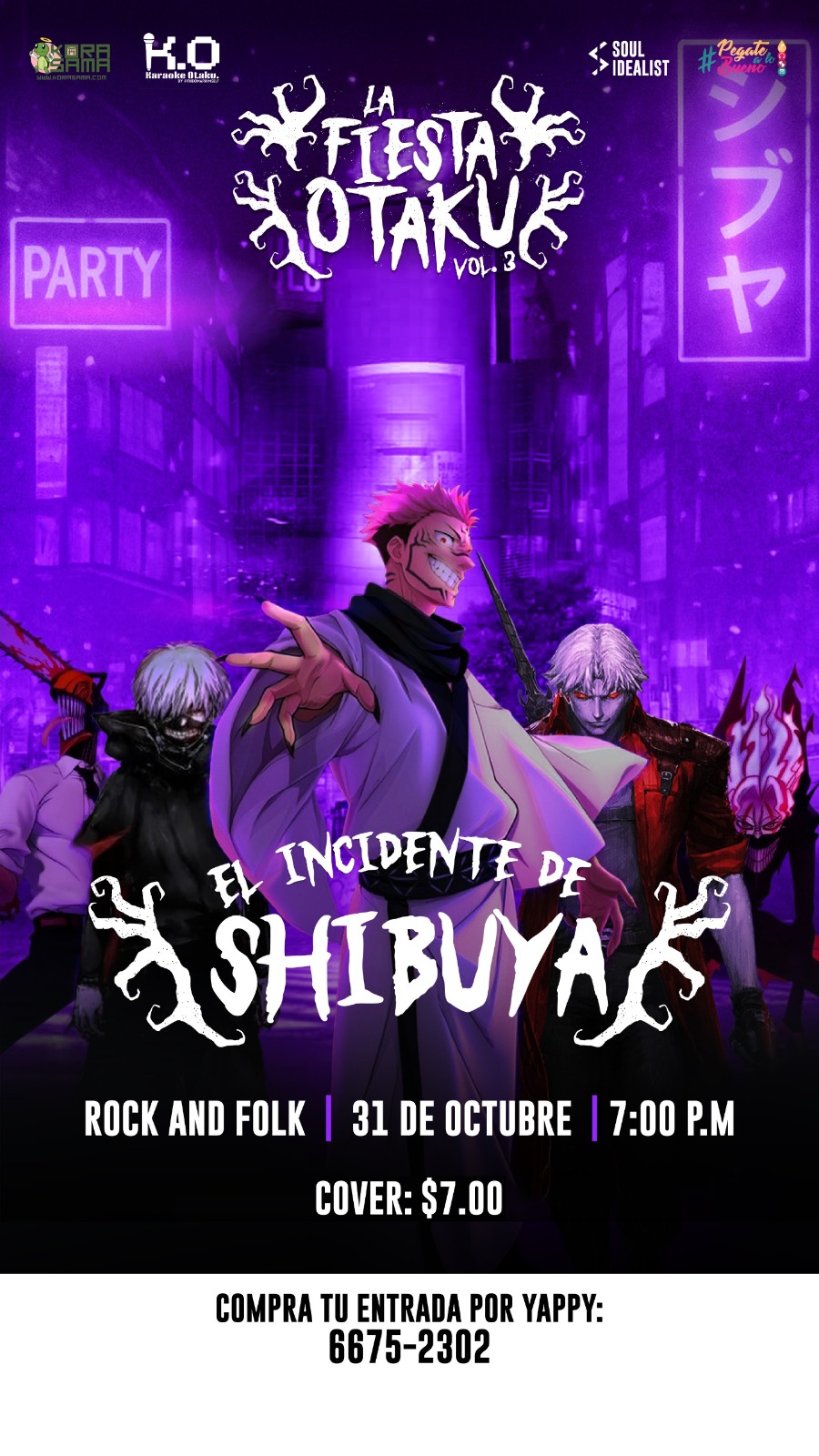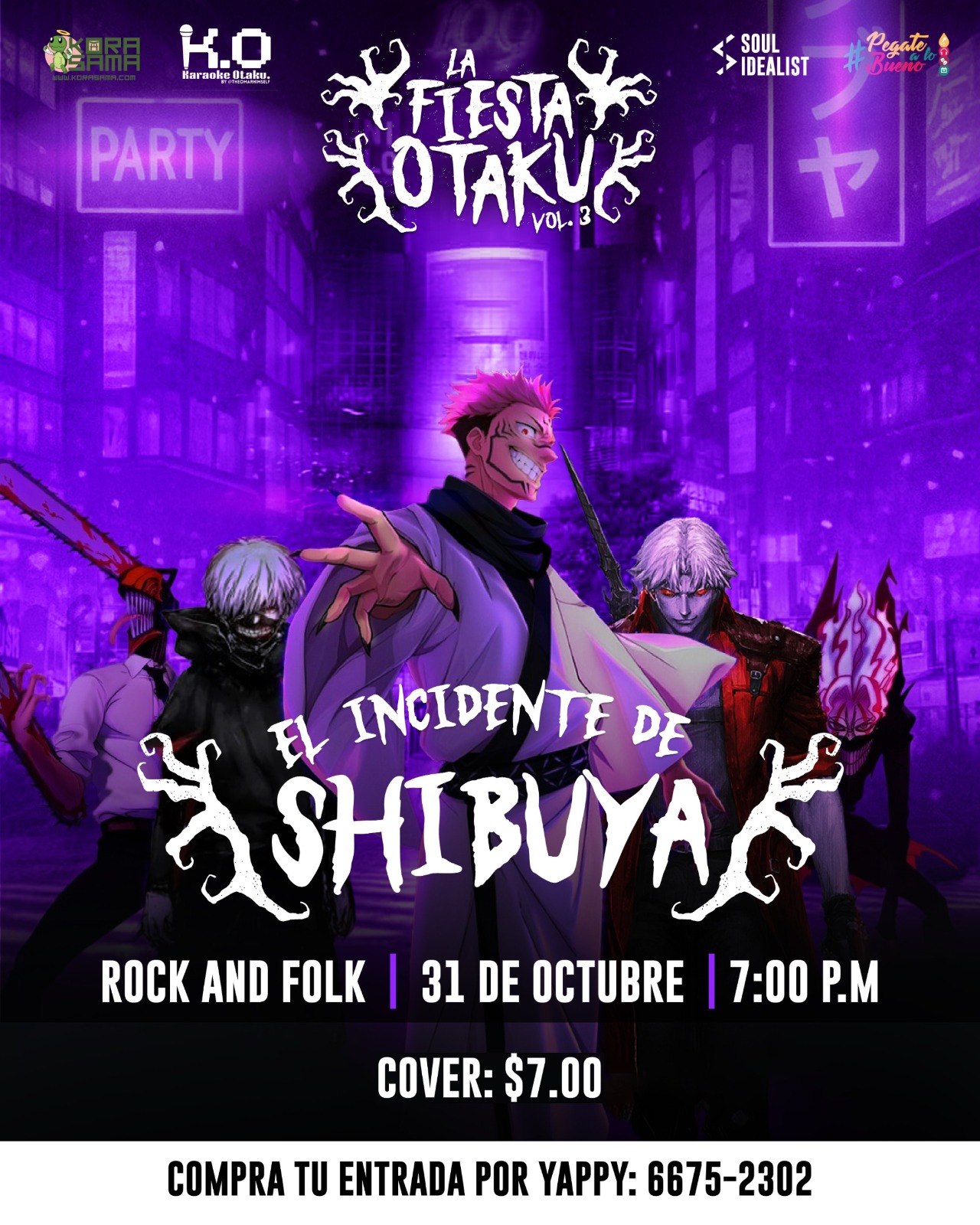 El viernes 31 de octubre prepara tu mejor disfraz para “La Fiesta Otaku Volumen 3 – Edición Primer Aniversario”. Llégate a Rock and Folk desde las 7:00 p.m y averigüemos quién ayudará a Gojo a escapar de la Prisión Confinadora al ritmo de los mejores opennings y endings de tus animes preferidos con un show de luces, videos y muchas sorpresas.