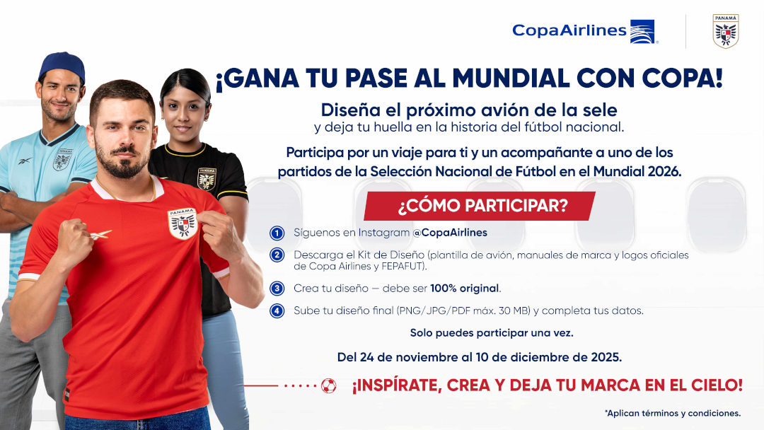- El diseño ganador se anunciará el 23 de enero de 2026, será plasmado en una de las aeronaves Boeing de Copa Airlines y su autor recibirá un viaje para dos personas a uno de los partidos de Panamá en el Mundial 2026