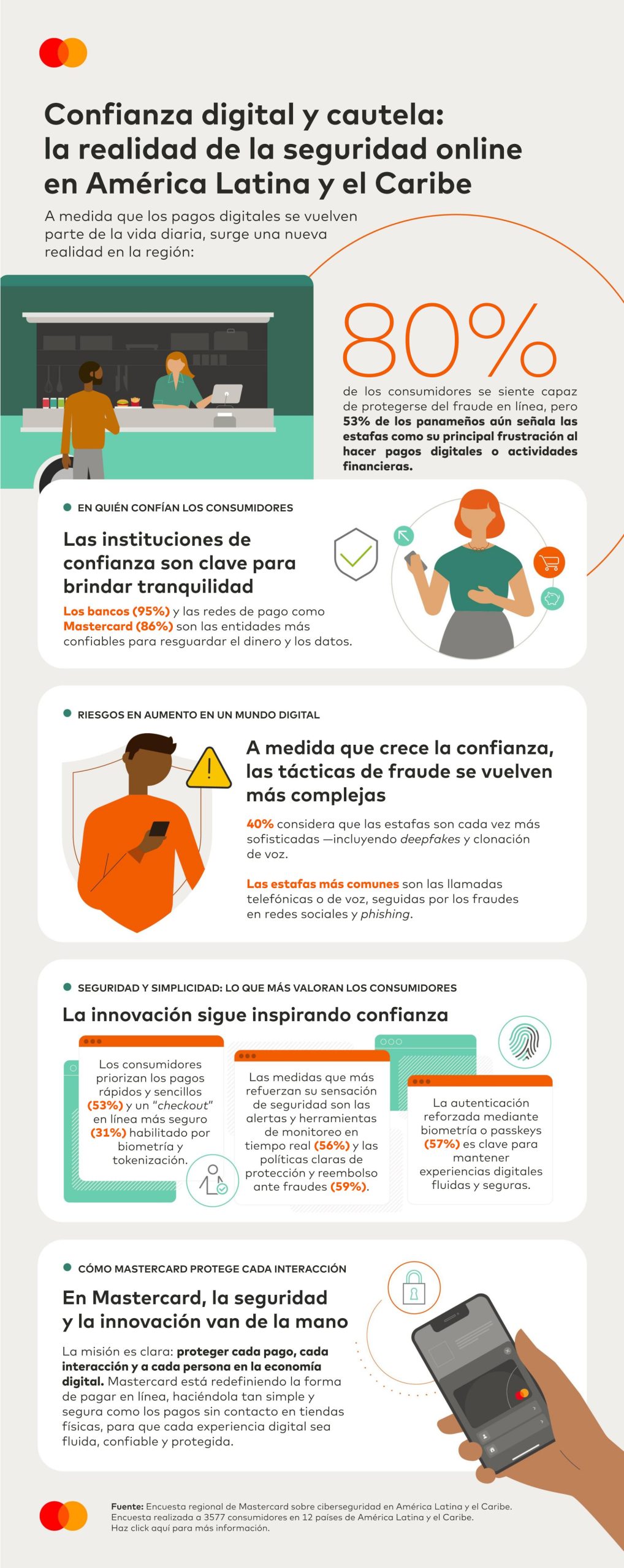A medida que los pagos digitales se generalizan y la comodidad crece, surge una nueva paradoja en América Latina y el Caribe: si bien los consumidores confían cada vez más en su capacidad para navegar por el mundo digital, el miedo al fraude y las estafas sigue siendo su principal preocupación. Esto concluye la última encuesta regional sobre ciberseguridad elaborada por Mastercard.