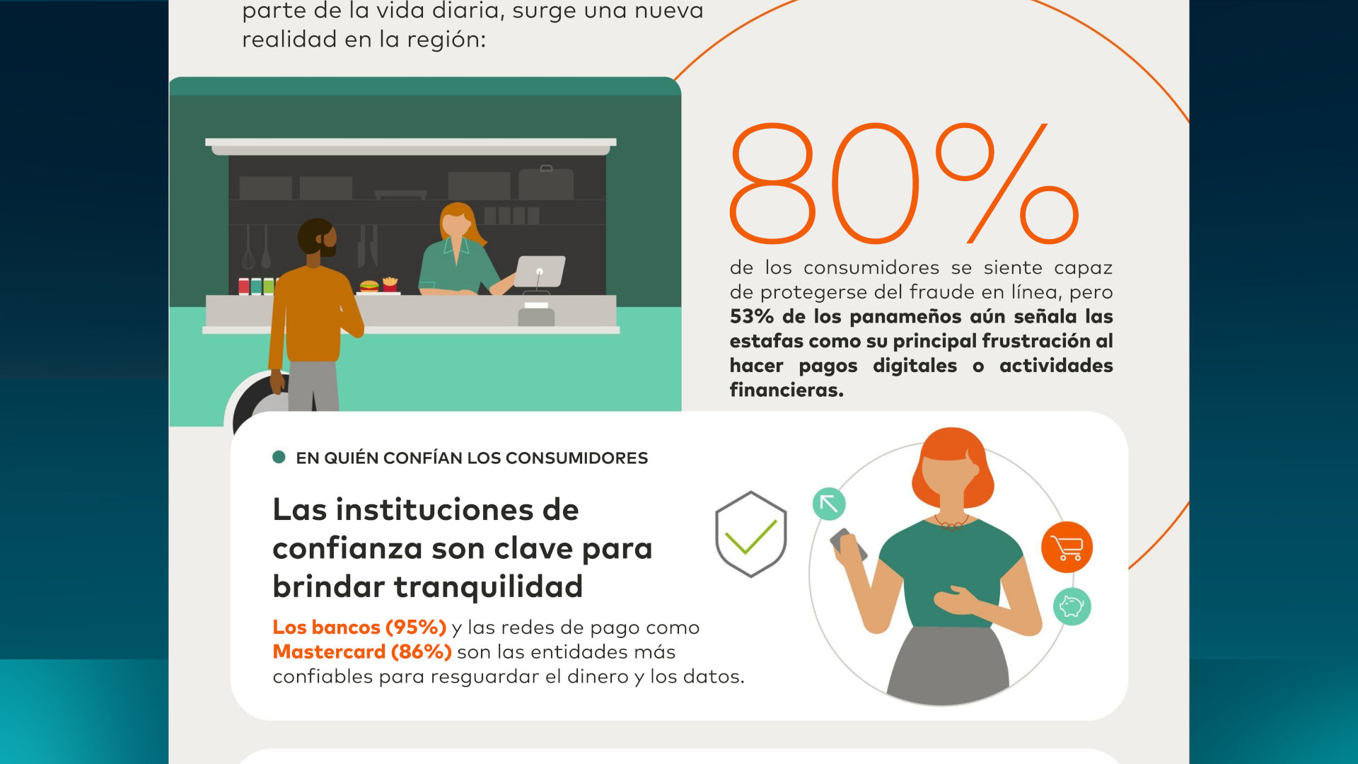 - La buena noticia: los consumidores confían en que sus proveedores, especialmente las instituciones financieras y redes como Mastercard, mantendrán su dinero y sus datos seguros.