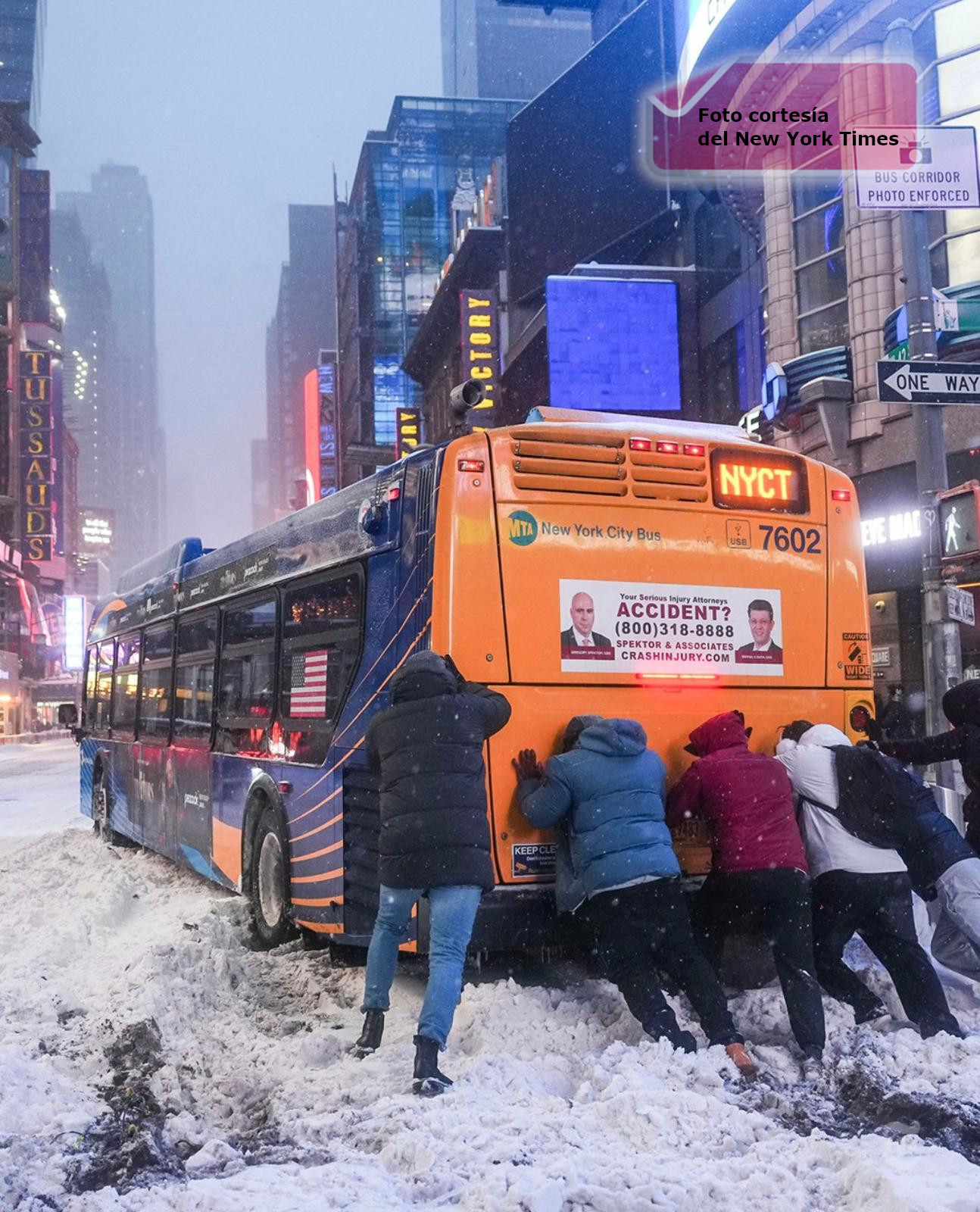 La ciudad de Nueva York también ha sentido el impacto: calles y avenidas cubiertas de nieve, vuelos cancelados en los principales aeropuertos, transporte público en operación reducida y el cierre de escuelas, que han pasado a clases remotas para proteger a estudiantes y familias.