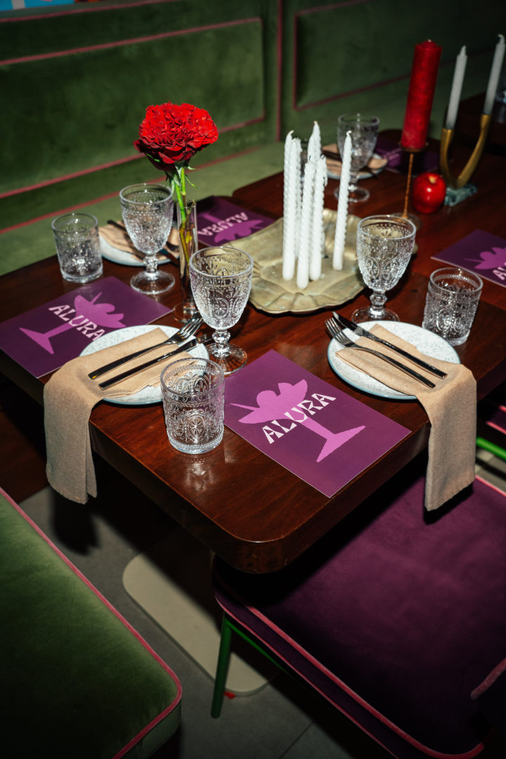 Durante el día, el restaurante ofrece un ambiente familiar ideal para disfrutar un brunch en domingo o encuentros casuales durante la semana, manteniendo una energía vibrante que motiva a los visitantes a prolongar su estancia. Por el contrario, al caer la noche, el espacio se envuelve en un entorno sofisticado, tranquilo y de tintes románticos. En este horario, Alura utiliza el enigma para generar expectativa, presentándose con un carácter atractivo que invita a la calma.