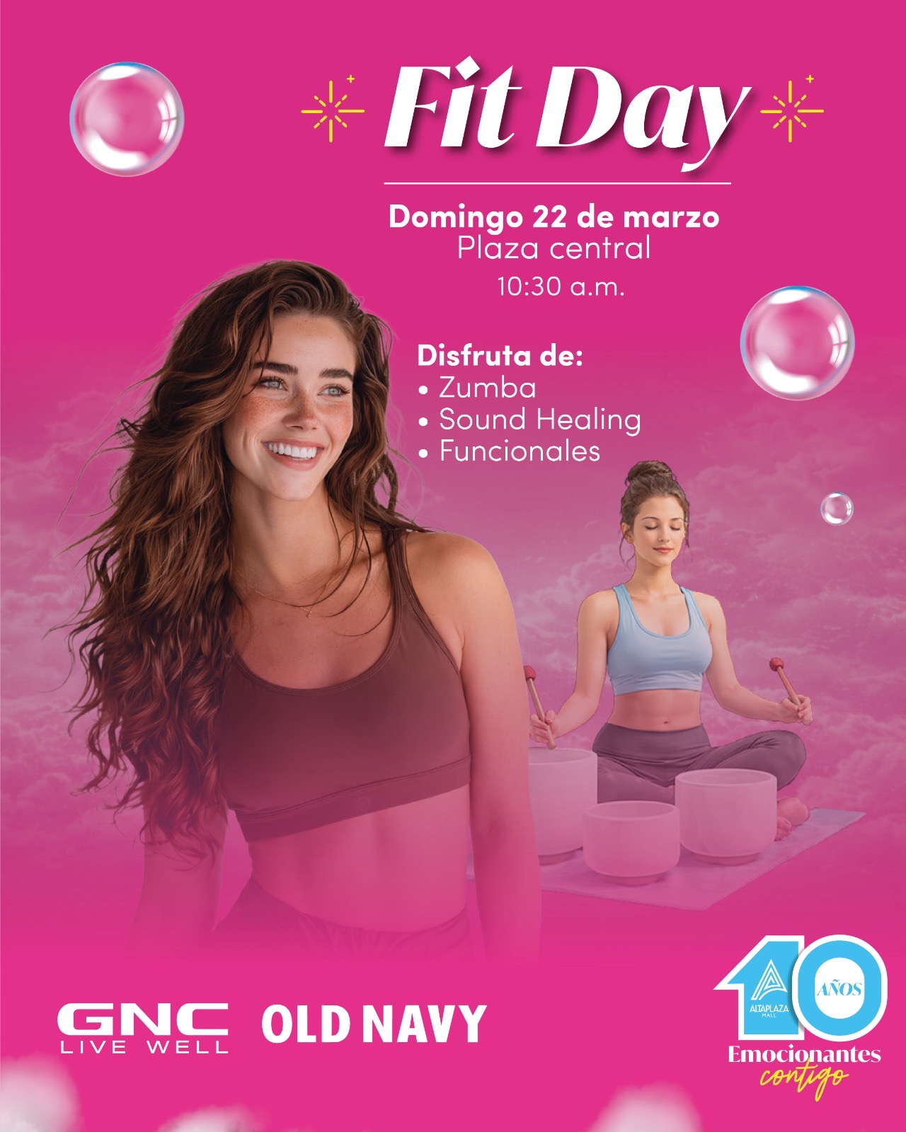 El domingo 22 de marzo a las 10:30 a.m., AltaPlaza Mall también promoverá el bienestar con una jornada de actividades físicas que incluirá clases de Zumba, sound healing y entrenamiento funcional, evento organizado en conjunto con GNC Live Well y Old Navy.