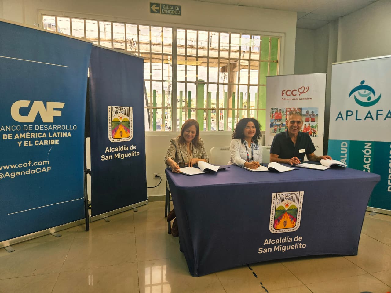 La iniciativa fue formalizada este miércoles 25 de marzo durante un acto encabezado por la alcaldesa de San Miguelito, Irma Hernández; Lucía Meza, representante de CAF en Panamá; y Samuel Azout, presidente y fundador de FCC, quienes destacaron el potencial del deporte como motor de transformación social y cohesión comunitaria.