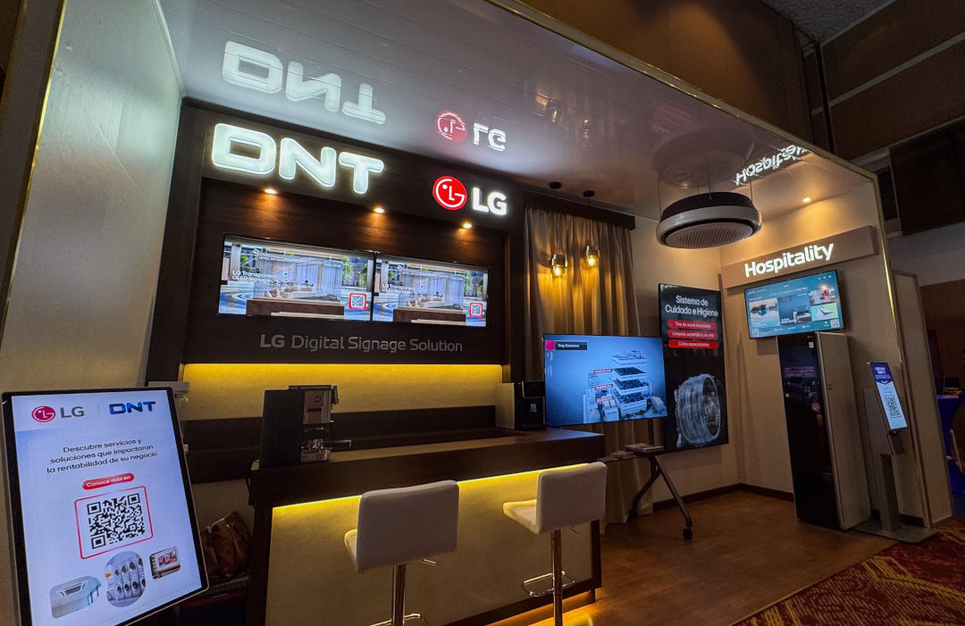 Durante el evento, la marca presentó tecnologías agrupadas en tres categorías que hoy son decisivas para el desempeño en hospitalidad: pantallas comerciales y señalización digital, climatización comercial (HVAC) y soluciones de lavandería comercial. La exhibición se realizó en un stand conjunto con DNT (Distribuidora New Tech), distribuidor autorizado de LG en Panamá, como aliado local para el acompañamiento técnico de proyectos B2B.