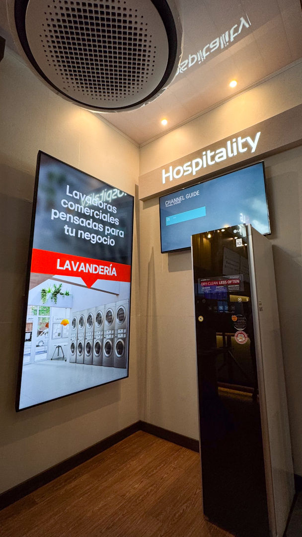 LG puso el foco en cómo la comunicación visual se ha convertido en parte de la experiencia. En restaurantes y cafés, los menús digitales y el digital signage permiten actualizar ofertas con agilidad, reforzar promociones en tiempo real y ordenar la información en momentos de alta demanda; en hotelería, las pantallas comerciales y TVs para hospitalidad se integran a una lógica de servicio. En esa línea, LG ha desarrollado ecosistemas como Pro:Centric para entornos hoteleros, que facilitan la gestión de contenidos y elevan la experiencia en habitación con capacidades alineadas al hábito actual del huésped, incluyendo Apple AirPlay y Google Cast en modelos compatibles, para transmitir contenido desde el dispositivo personal.